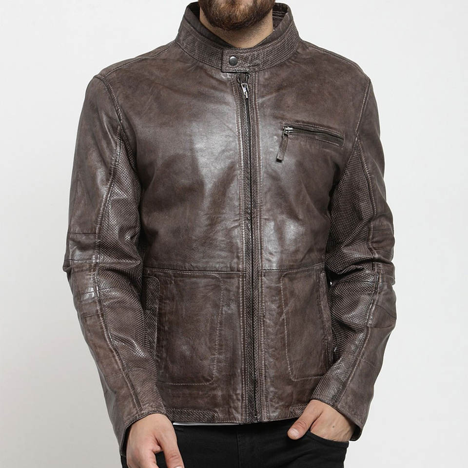 Fashionable Style Outdoor Wear Unique Design Men Leather Jacket Heavyweight Regular Size Men Leather Jacket