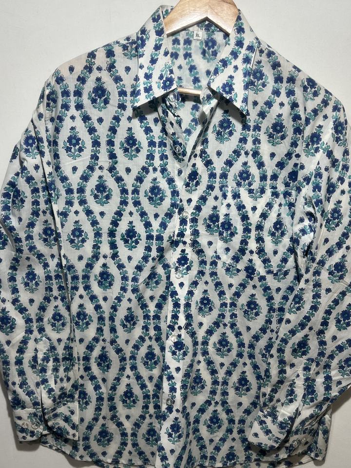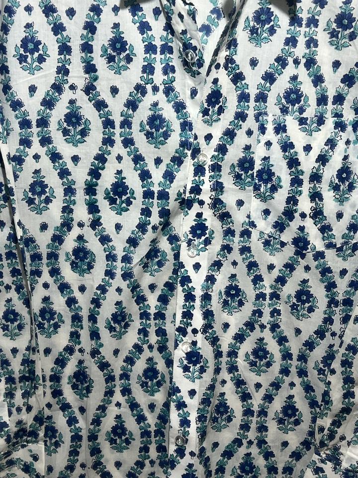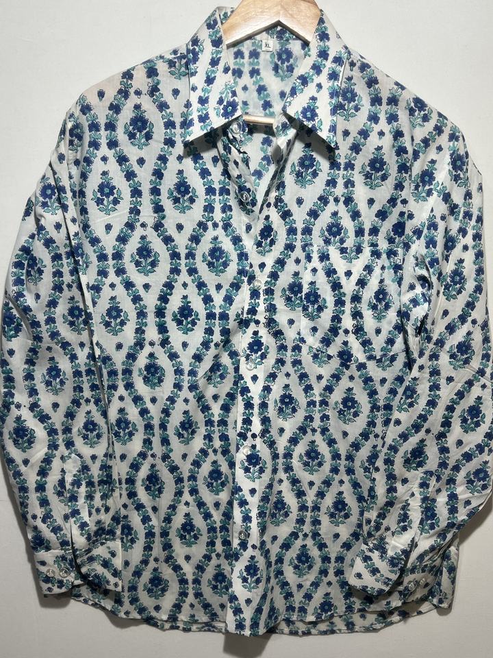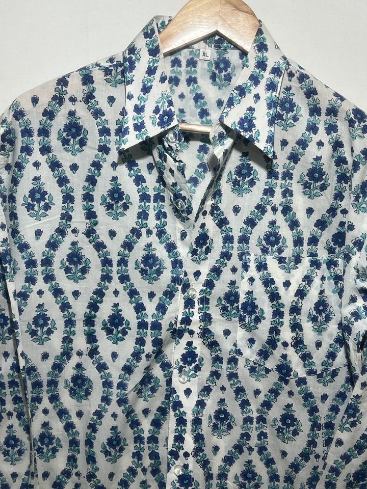 Chemise décontractée en coton imprimé à la main pour homme, élégante et tendance | Collection de chemises à manches longues 100% coton à motifs floraux