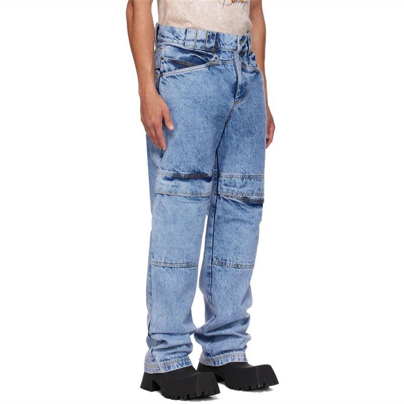 Jeans en denim bleu non extensible de haute qualité, épais et lourd, à six poches, tendance et à la mode pour hommes