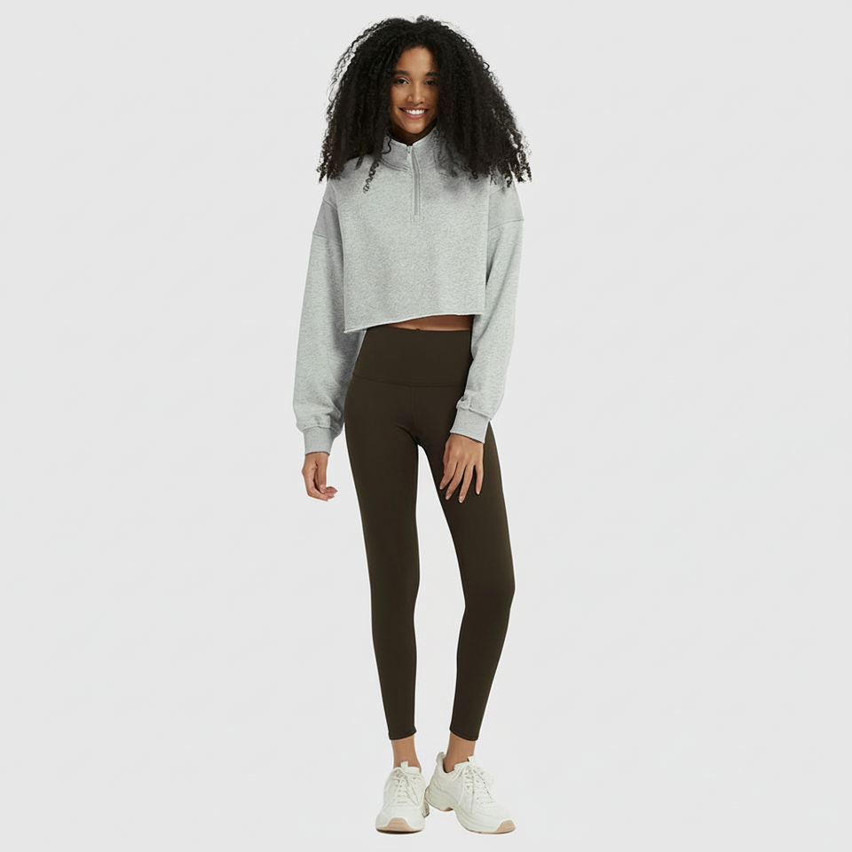 Fashionable Two Piece Set Loose Fit Hoodie and Bodycon Leggings Cropped Pullover with Zipper and Stretch Leggings