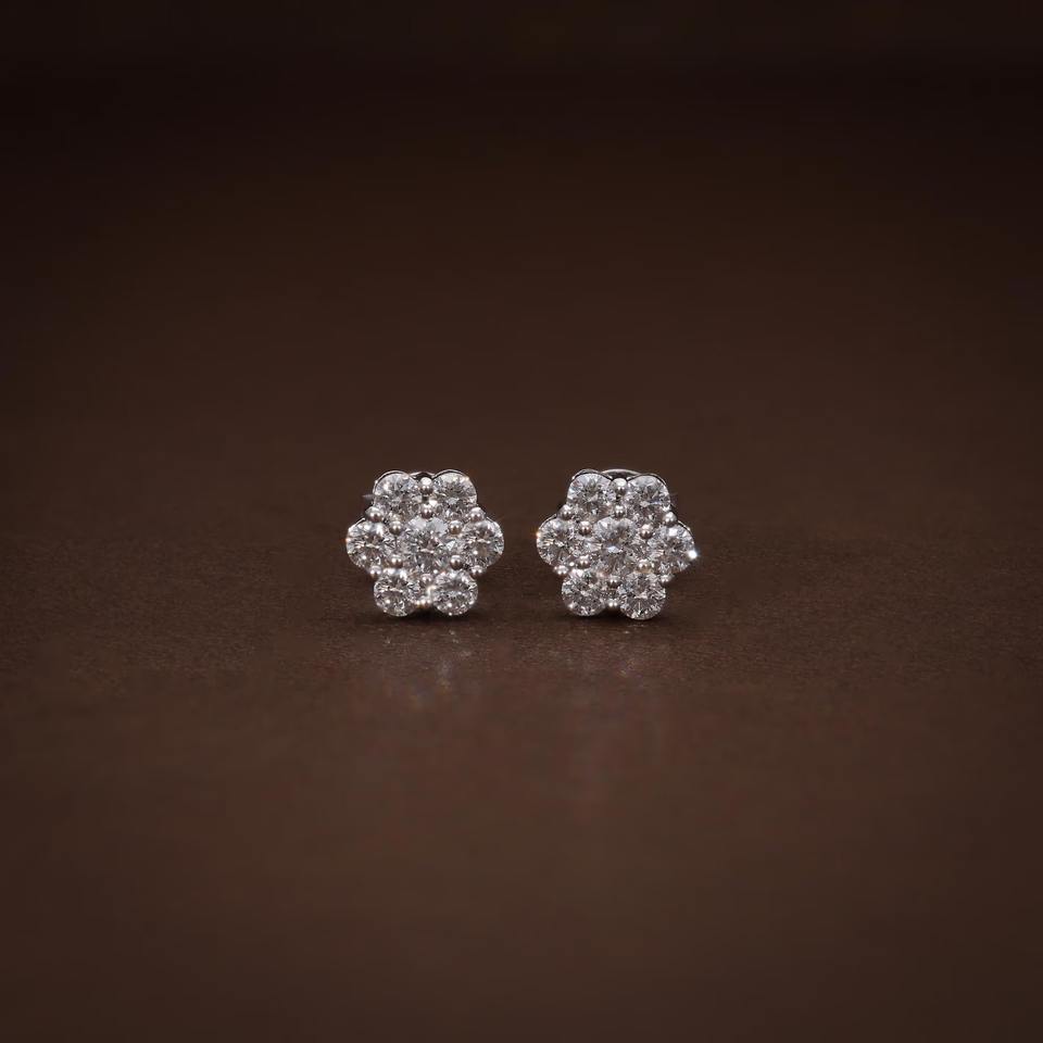 Boucles d'oreilles clous en diamant de laboratoire VVS D tendance avec boucles d'oreilles clous en or blanc 14 carats pour femmes, idée cadeau à bas prix