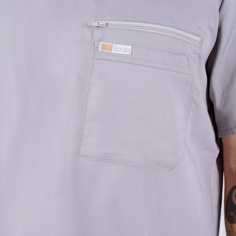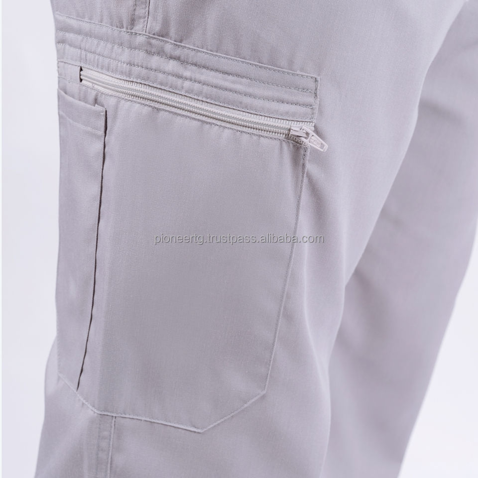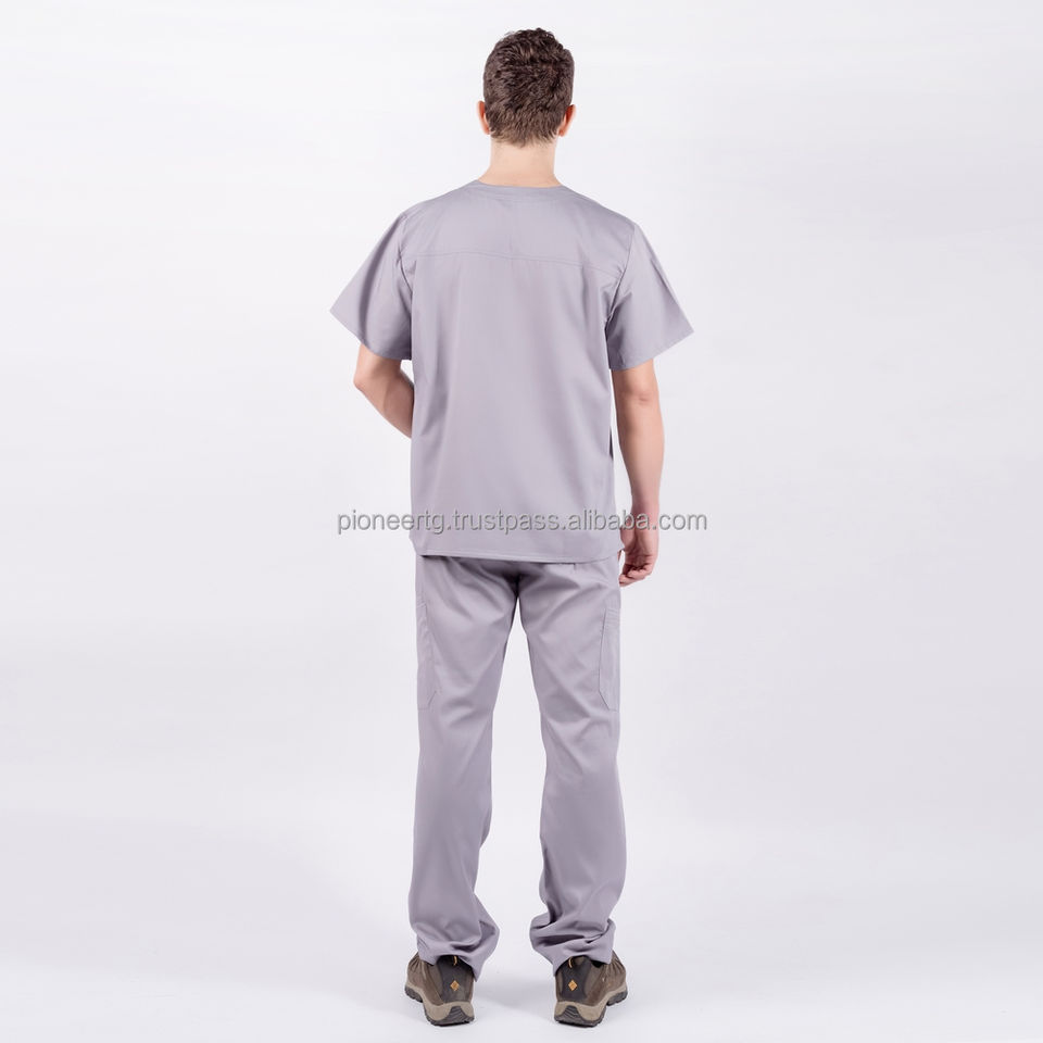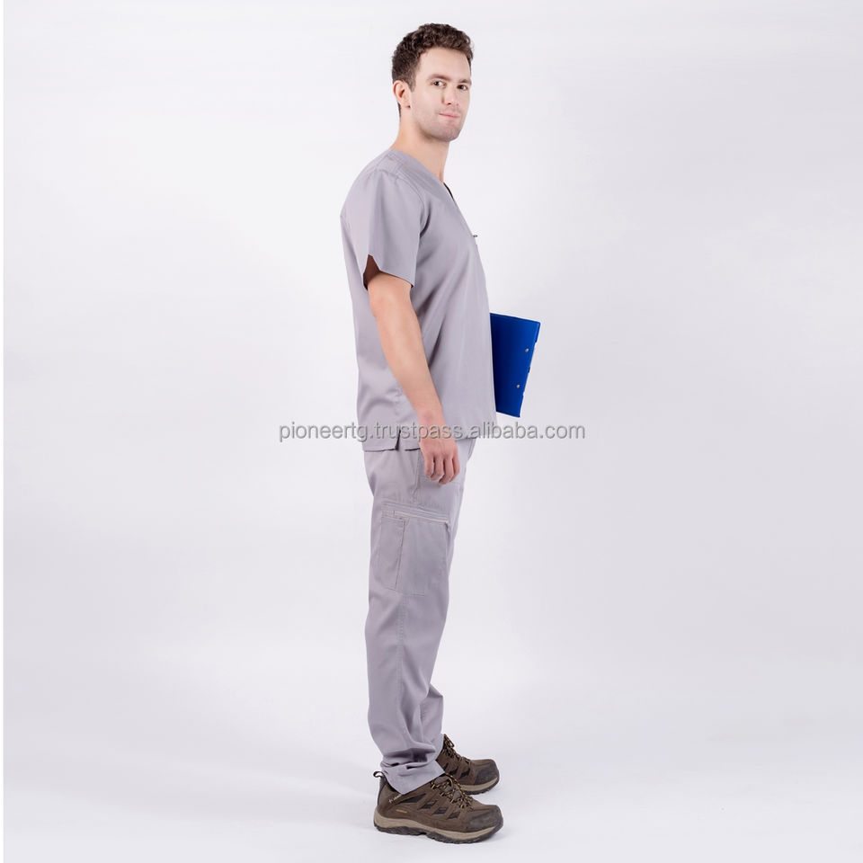 Tenue de travail vétérinaire tendance pour hommes en polyester, rayonne et élasthanne, coupe droite, avec logo personnalisé et impression en relief