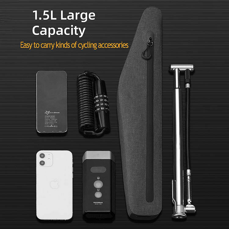 Sac de vélo triangulaire à cadre interne de 1,5 L avec fermeture éclair imperméable et tendance, sac de guidon pour le cyclisme
