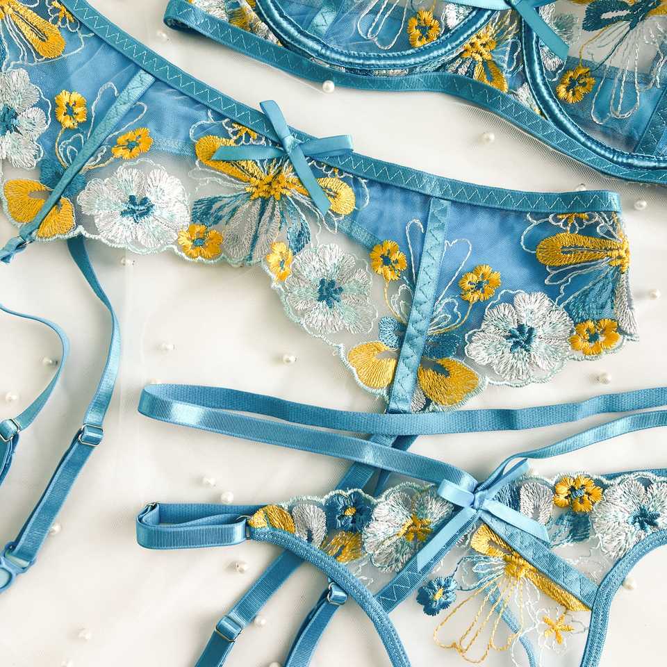 Product Name:Deep Love Embroidery Lace Push Up Bra Mesh Panties 3 Piece Set