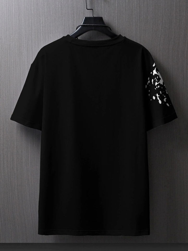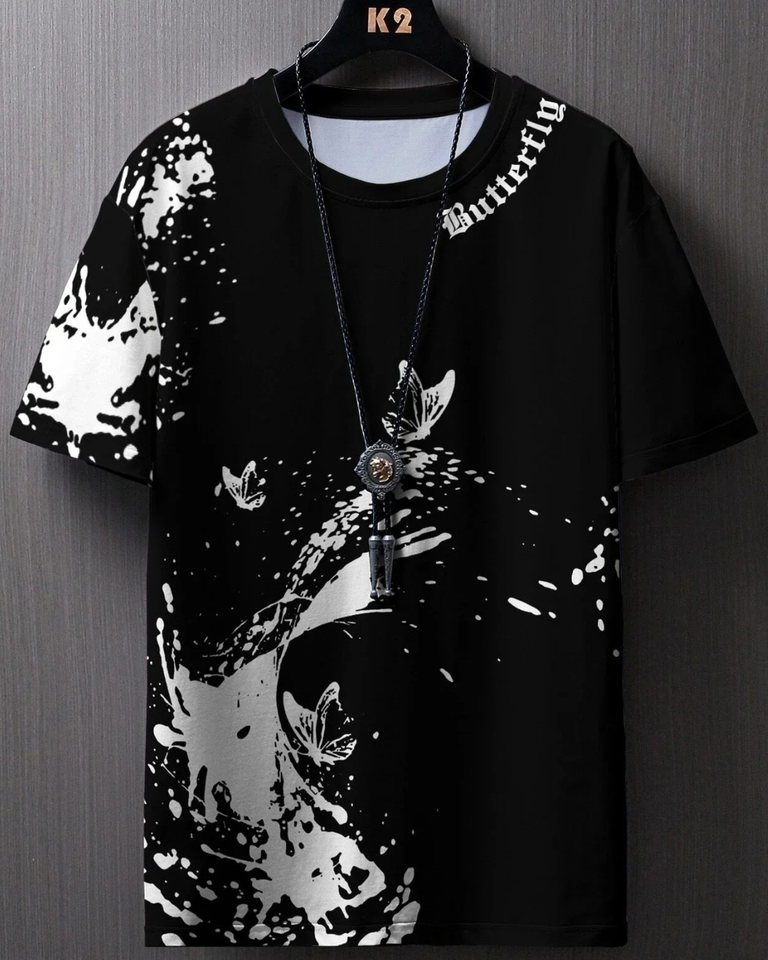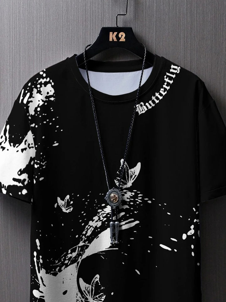 Fashionable casual men's butterfly and splash ink printed T-shirt comfortable breathable quick drying short sleeved T-shirt