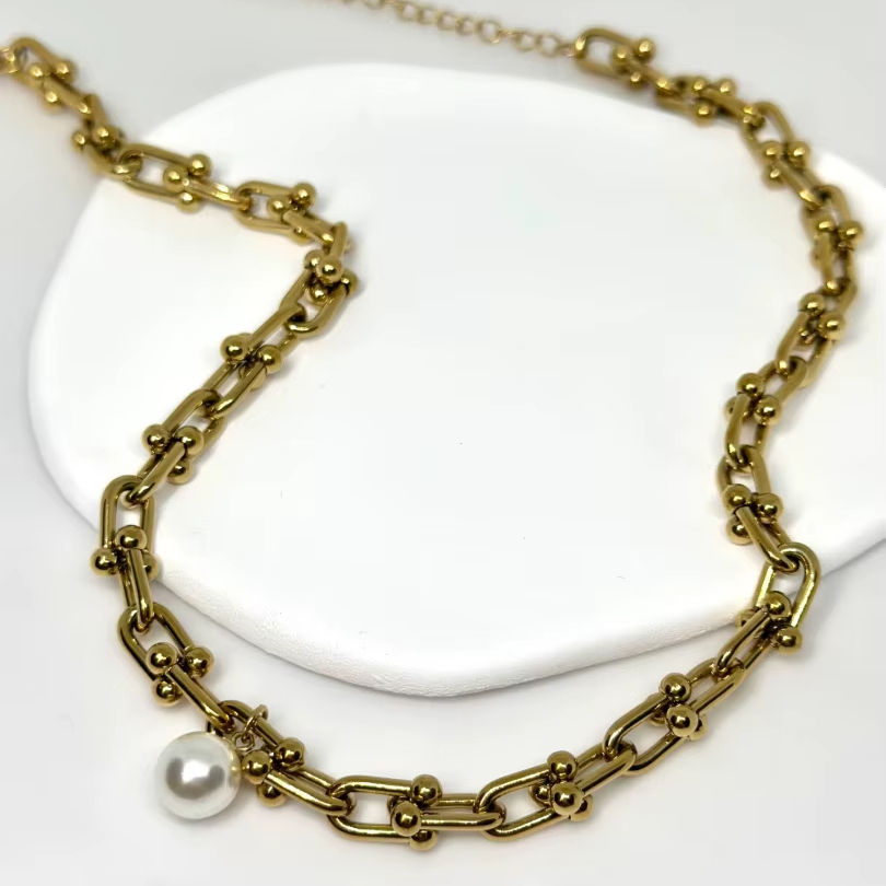 Fashionable stainless steel women's necklace a summer essential pairing with simple style pearls.