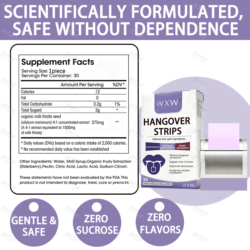 Bandes de soulagement rapide de la gueule de bois avec chardon-Marie et vitamine B12 pour une énergie instantanée