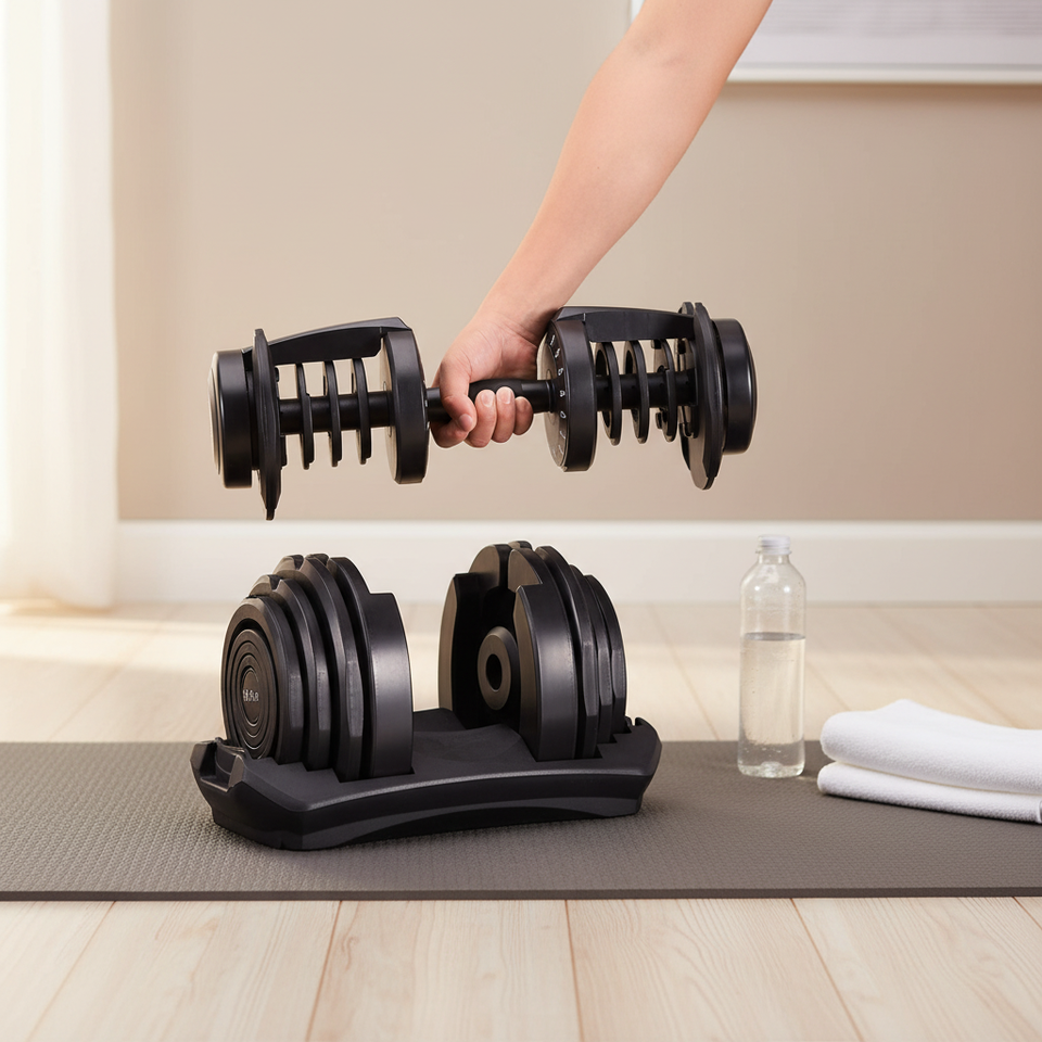 Haltère réglable à ajustement rapide avec système de verrouillage à une main pour des séances d'entraînement à domicile qui permettent de gagner du temps