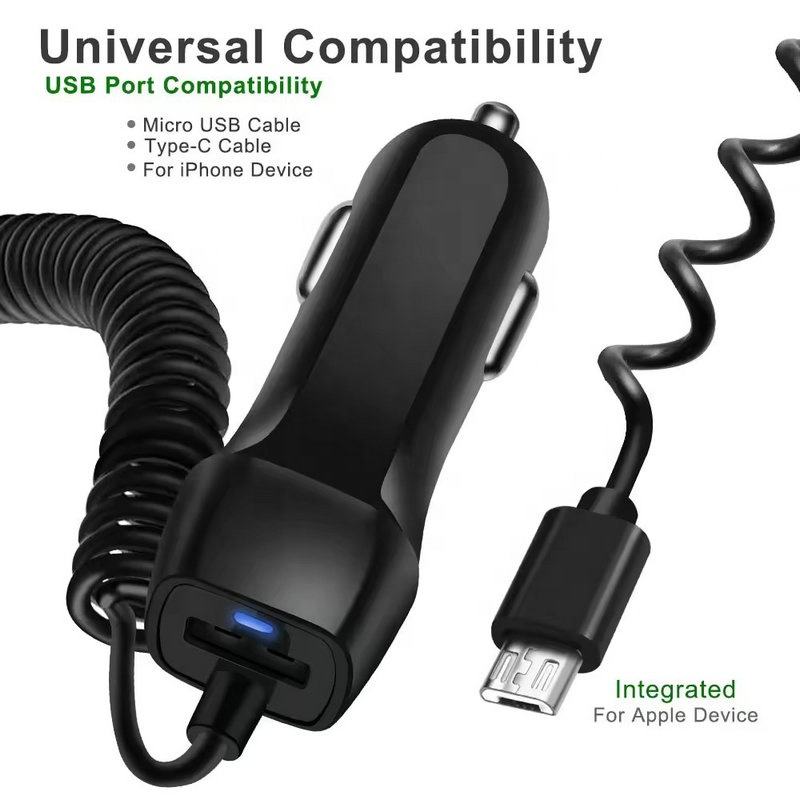Nom:Chargeur de voiture USB 1 port avec câble USB à ressort fixe