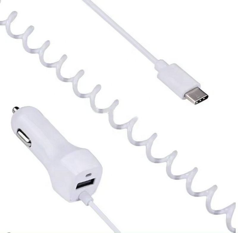 Chargeur de voiture USB 1 port avec câble USB à ressort fixe