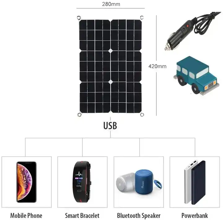 Panneau solaire portable Sunpower BC ETFE flexible USB-C à charge rapide 3W 5W 6W 8W 10W, kits de chargeur solaire mini 5V 6V 12V pour téléphone