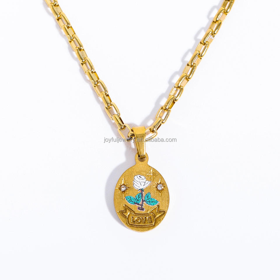 Livraison rapide 18k Or Classique Fleur Amour Pendentif Collier Ninkel Couleur Libre Peinture Tarot Divination Collier