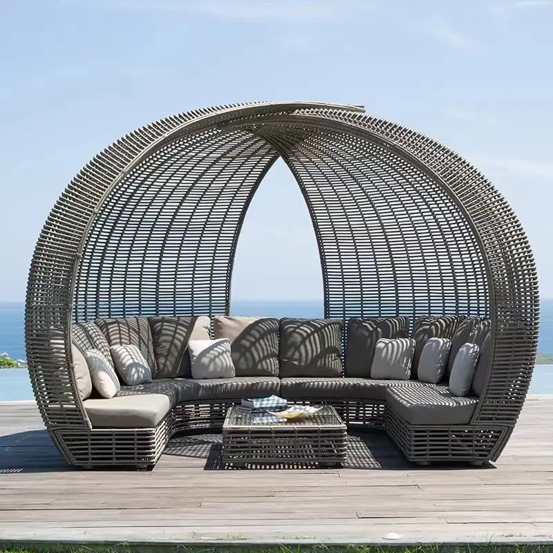 Lit de bronzage pour piscine à bas prix, mobilier d'extérieur rond incurvé, livraison rapide