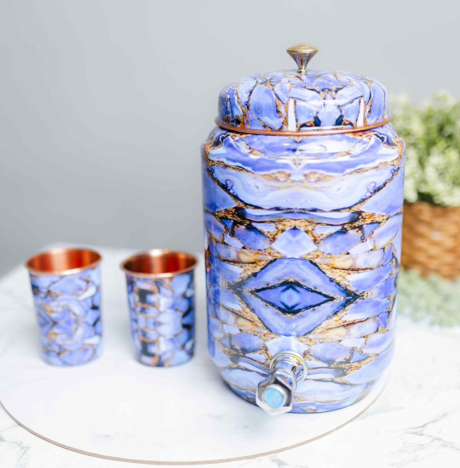 Livraison rapide Distributeur d'eau en cuivre pour distributeur de gobelets cadeaux Pot de réservoir d'eau martelé Ayurveda Prix bon marché