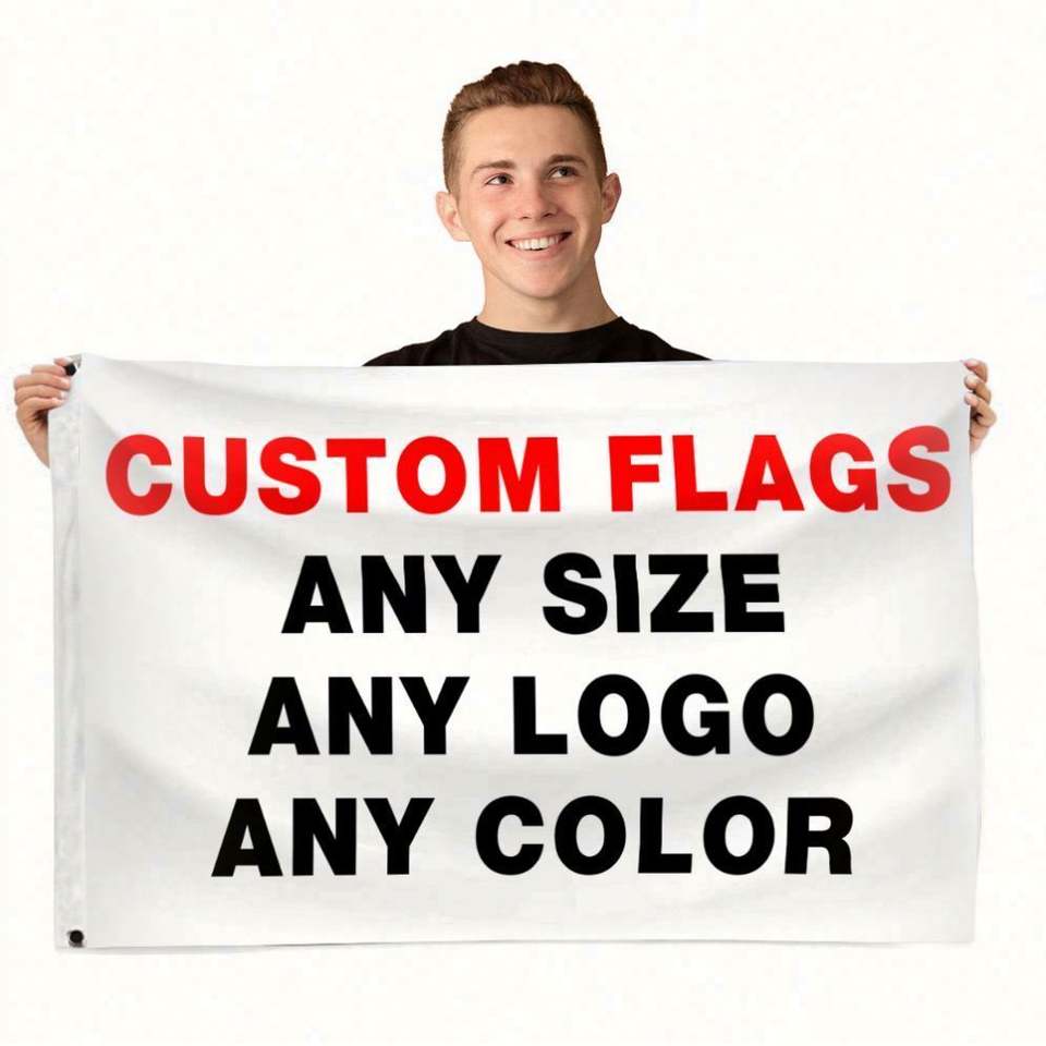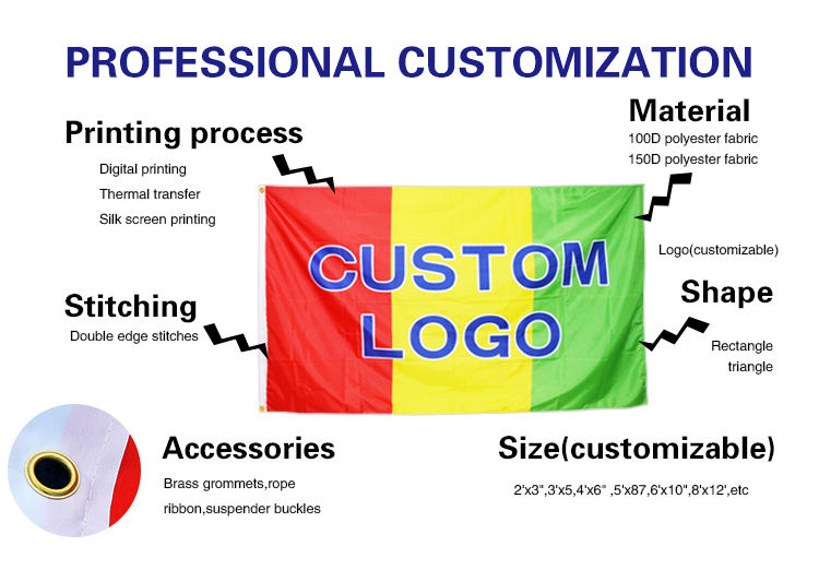Drapeaux en polyester 3x5 personnalisés ODM 100cmx150cm avec logo, résistants aux UV, par sublimation, double face, pour événements et entreprises, livraison rapide