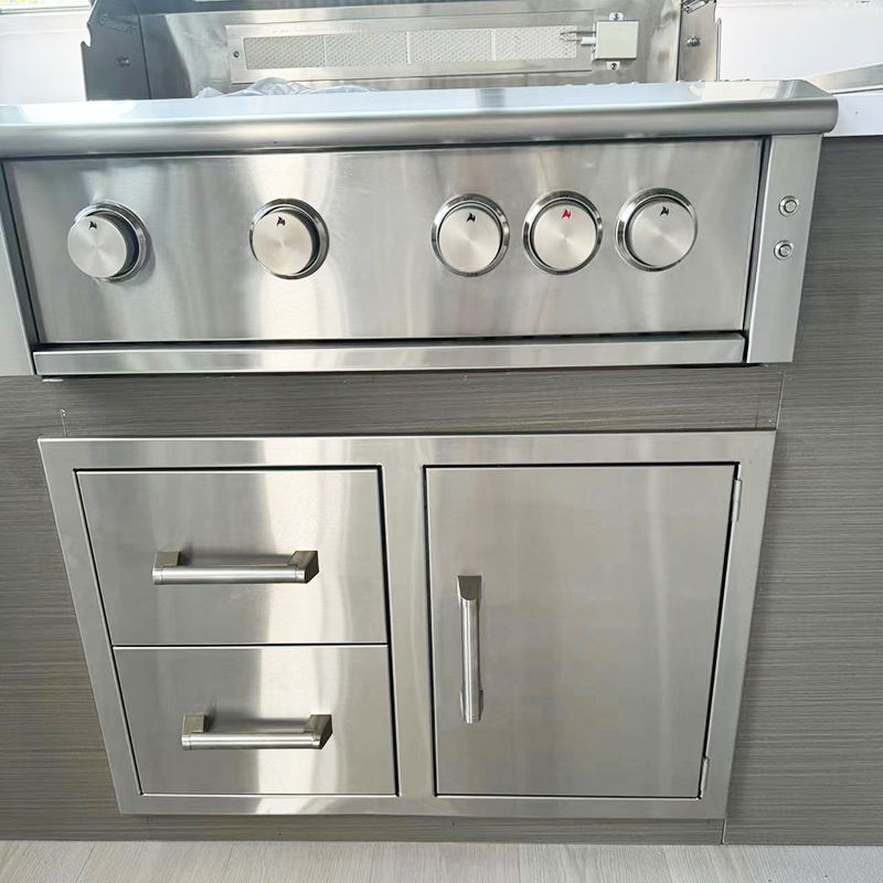 Livraison rapide Barbecue à gaz Île commerciale 4 Brûleur principal Gril à gaz intégré Ensembles d'outils de gril professionnel Barbecue à gaz Gril intégré
