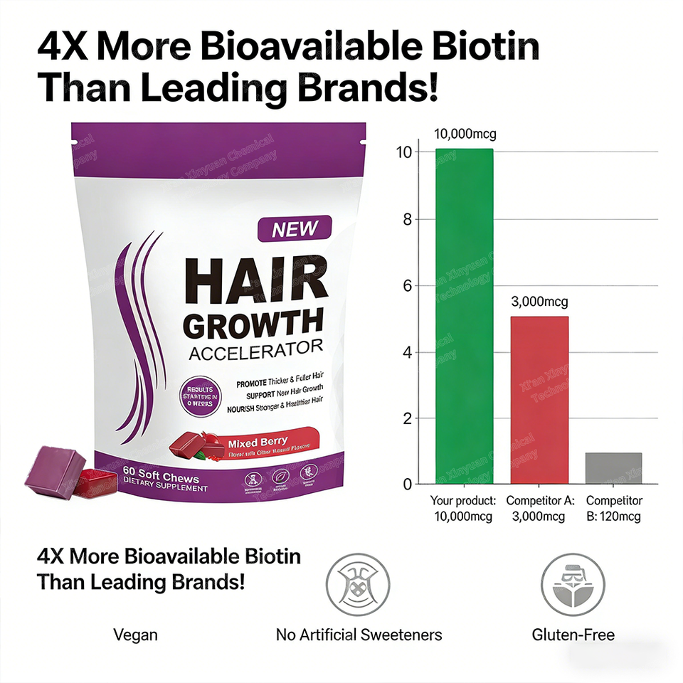En stock en mars, améliorez la santé de vos cheveux, accélérateur de croissance des cheveux, gommes à la biotine, vitamines et produits de beauté pour adultes