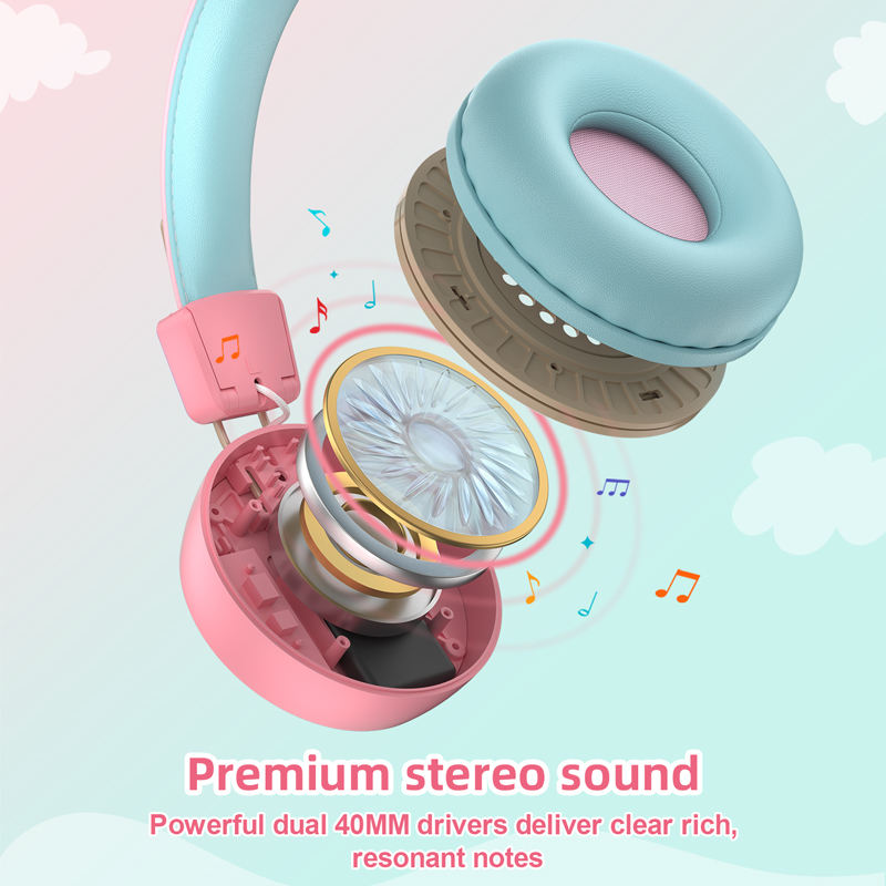 Nom du produit:Casque sans fil pour enfants avec lumières LED colorées KH22B
