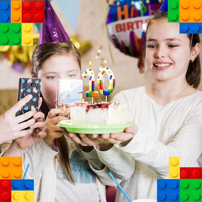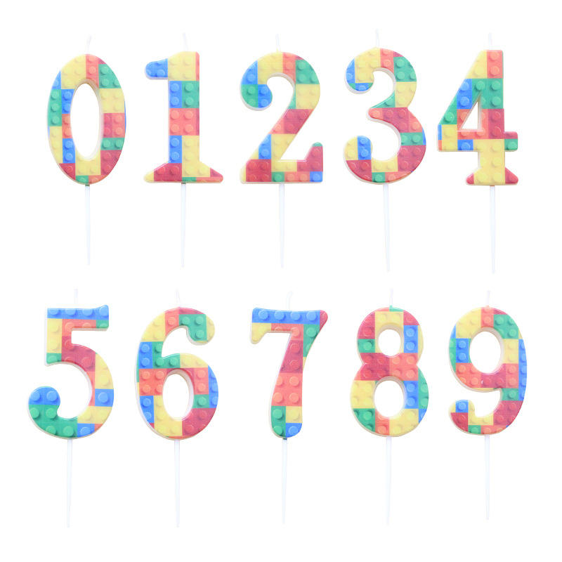 Livraison rapide, cire de paraffine, blocs de construction décoratifs sur le thème des dessins animés Lego, décoration de gâteau d'anniversaire, bougies numérotées de 0 à 9