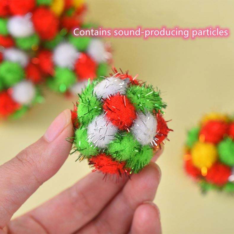 Jouets pour animaux de compagnie en forme de boule en fourrure interactive, écologiques, moelleux, qui produisent des sons de Noël, livraison rapide, ne se déforment pas