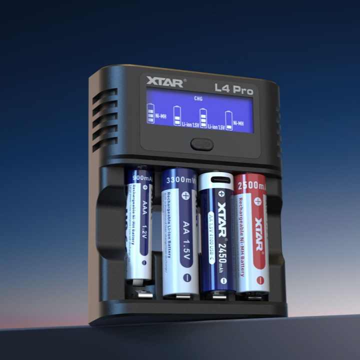 Livraison rapide XTAR L4 Pro Nouveau chargeur intelligent rapide à 4 emplacements Type-C avec testeur de capacité pour piles Li-ion 1,5 V et Ni-MH 1,2 V AA AAA
