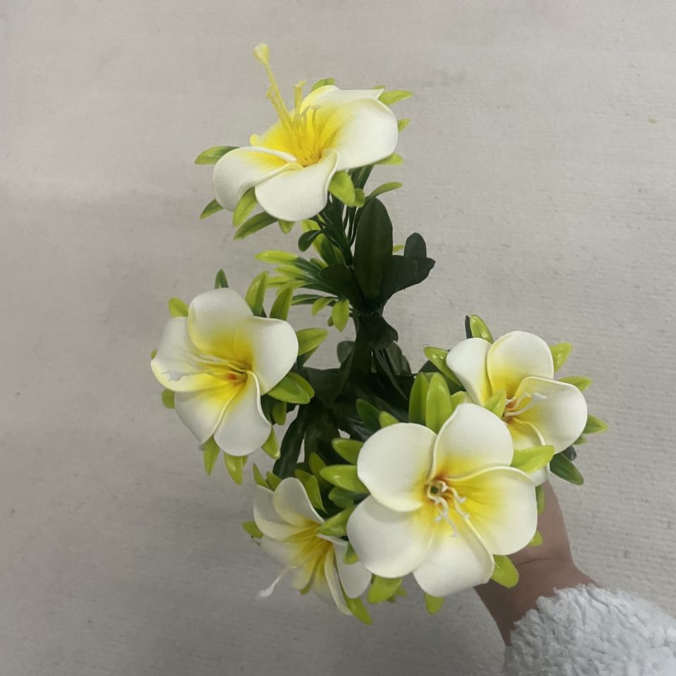 Livraison rapide pour la décoration de mariage et de la maison, 6 têtes, sophistiquées, en matériau PE, fleurs artificielles en forme d'œuf, frangipanier, faux plumeria