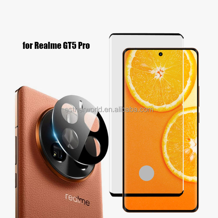 Déverrouillage rapide d'empreintes digitales protecteur d'écran à colle complète verre trempé pour téléphone portable Realme GT 5 Pro avec Film de verre d'objectif de caméra