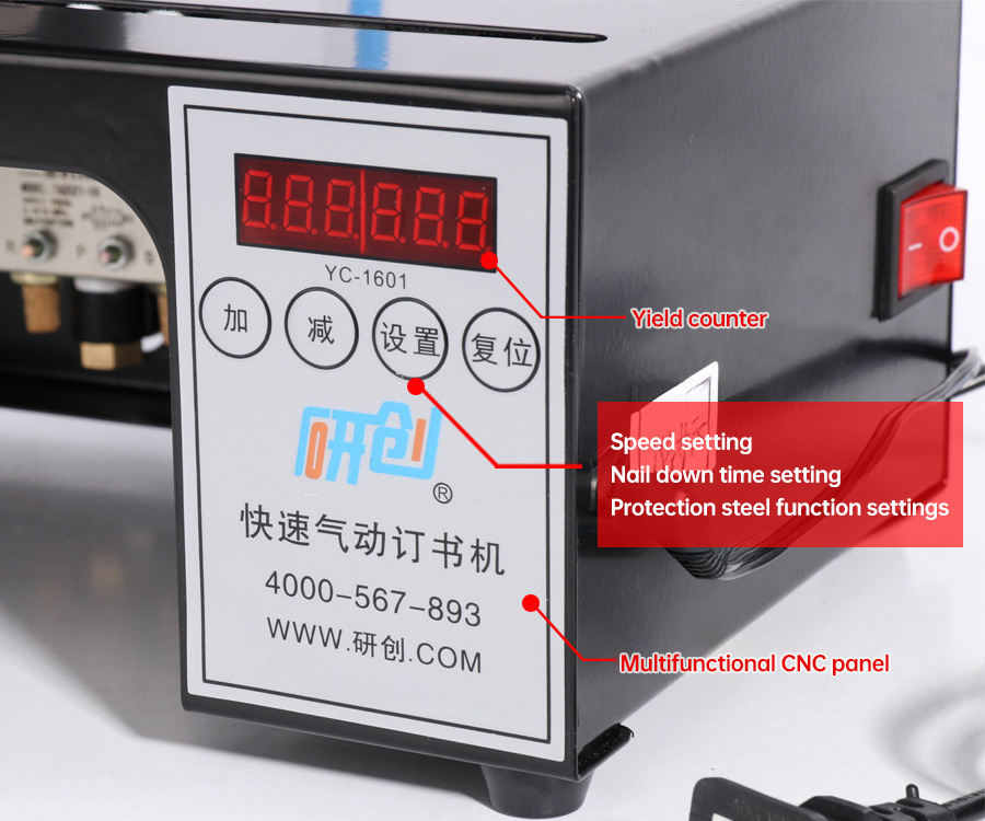 Agrafeuse électrique pneumatique à tête unique entièrement automatique et robuste, format jumbo, capacité d'agrafage 24/6, pour blister et carton