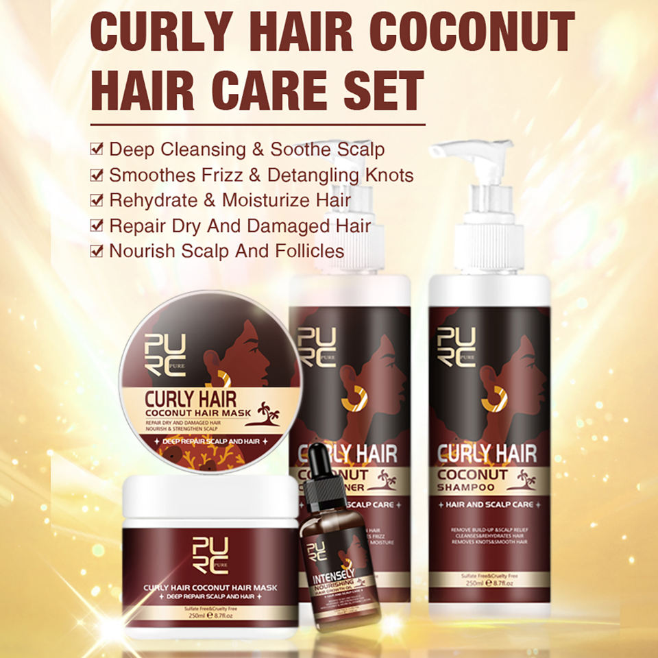 Ensemble de soins de cheveux de noix de coco de cheveux bouclés