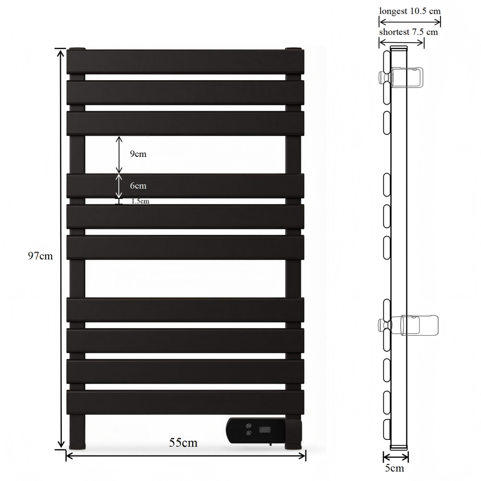 Chauffe-serviettes électrique classique à chauffage rapide 10 barres 500W avec minuterie 8H – Économisez l'énergie pour vos serviettes chaudes et votre hiver