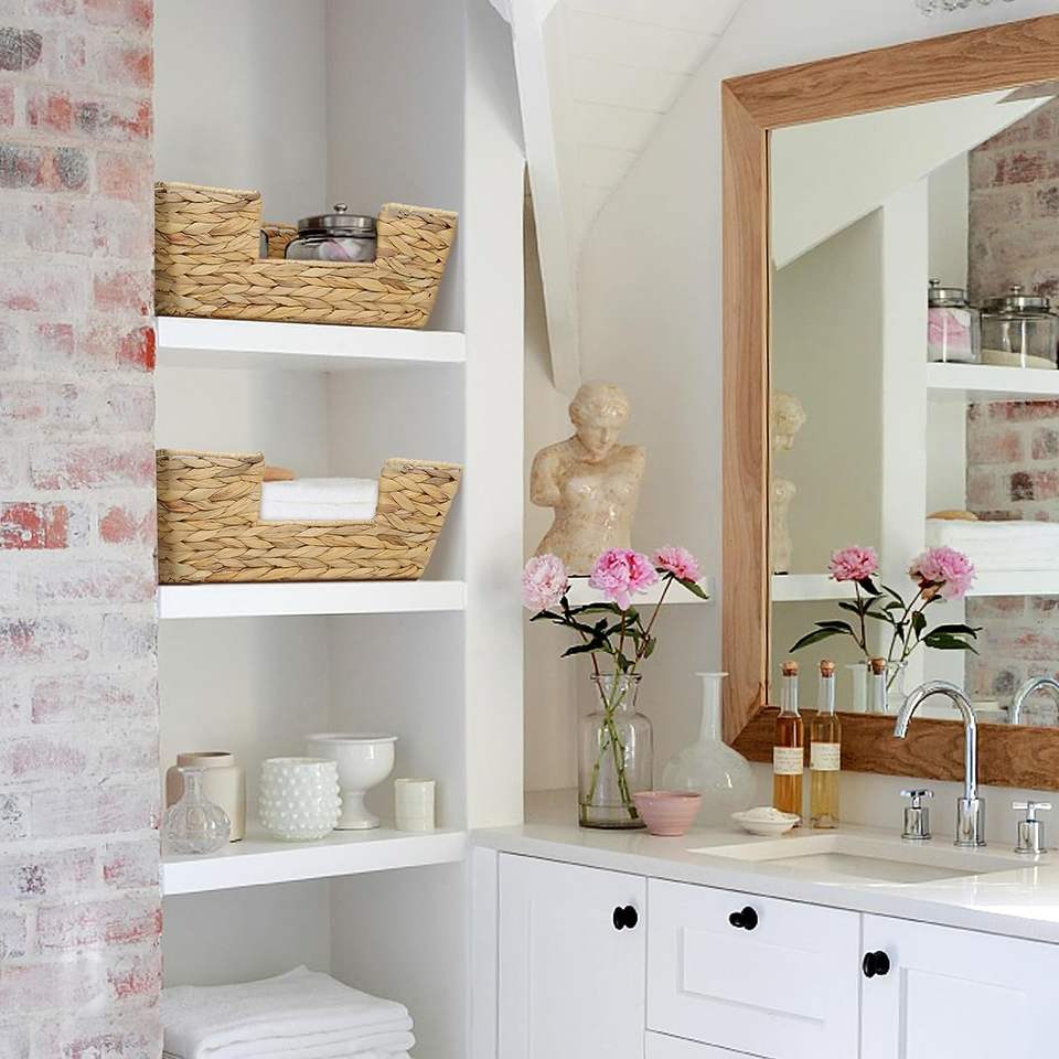 Expédition rapide grande jacinthe d'eau en osier organisateur panier ouvert avant bacs de rangement cuisine Snack tissé à la main rotin blanchisserie