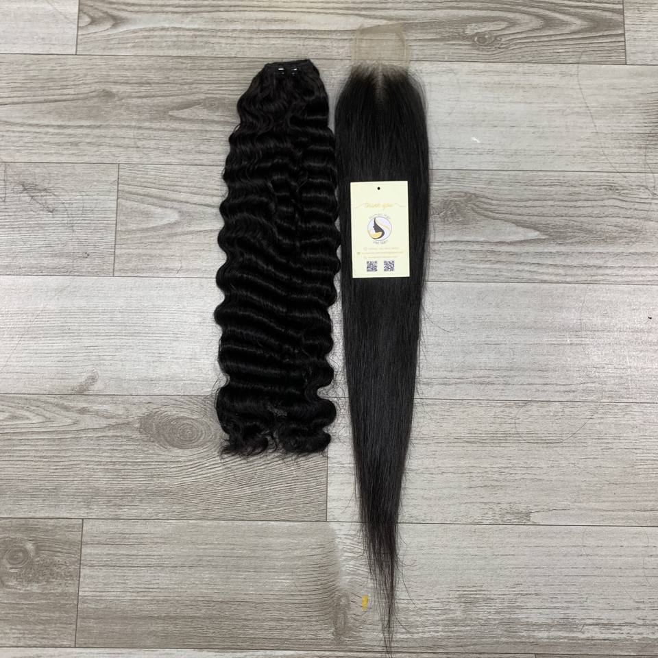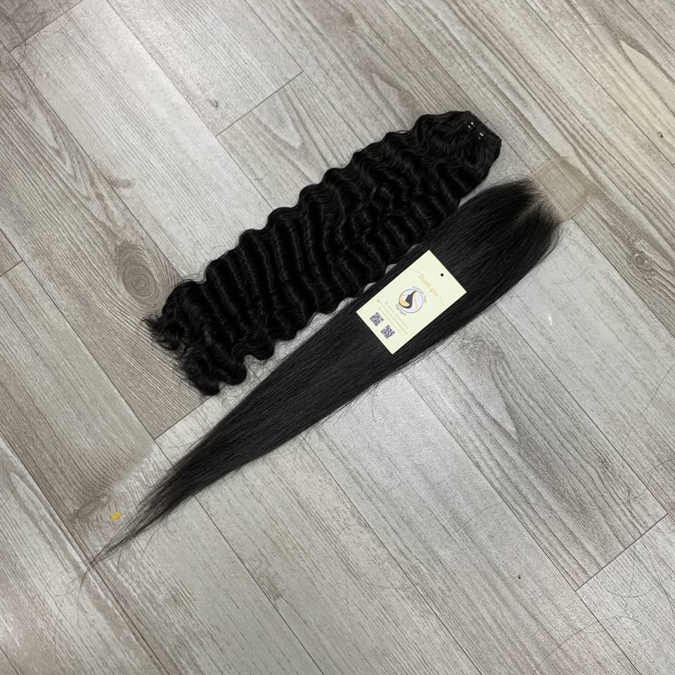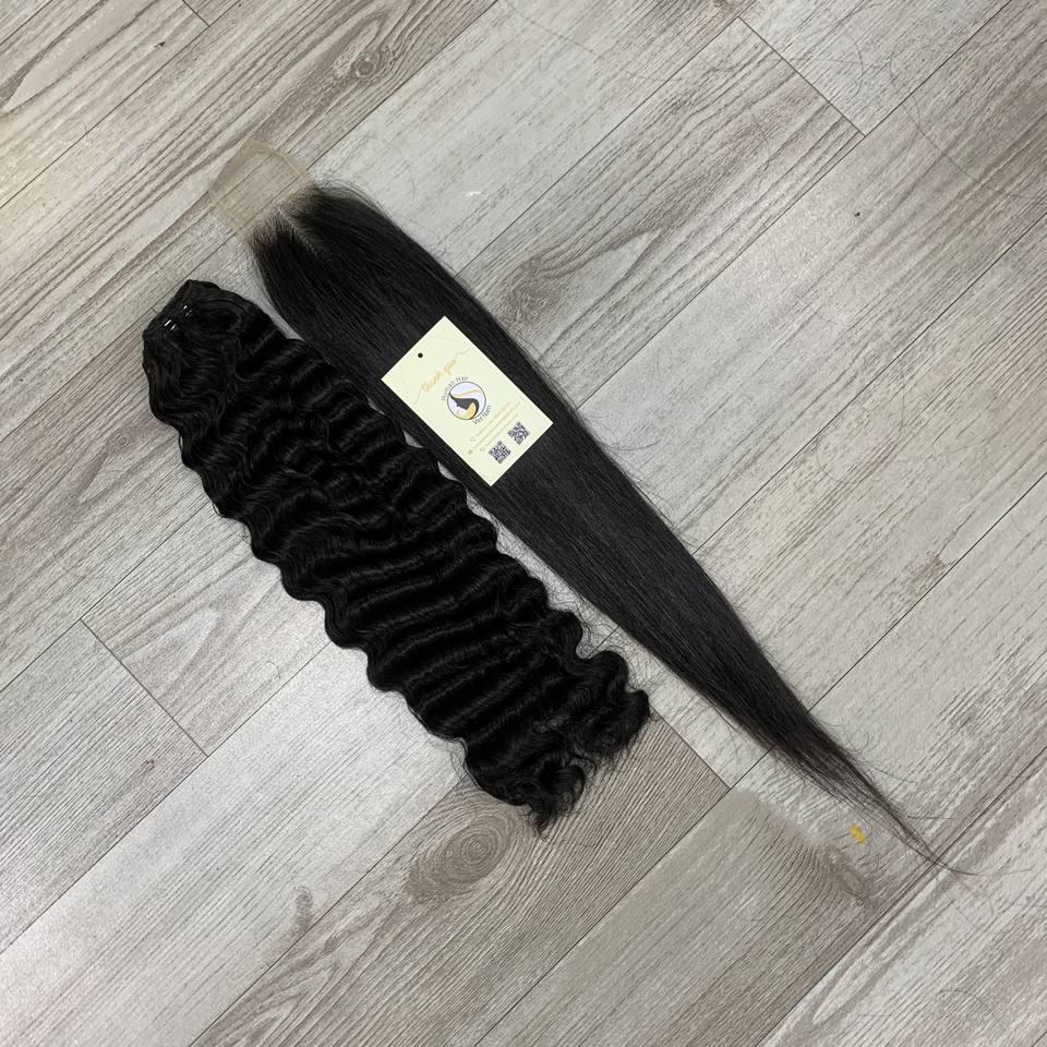 Expédition rapide Lâche Bouclés Doux et Durable Paquet de Cheveux Bruts et HD Dentelle 2x6 Fermeture Droite Extensions de Cheveux Humains
