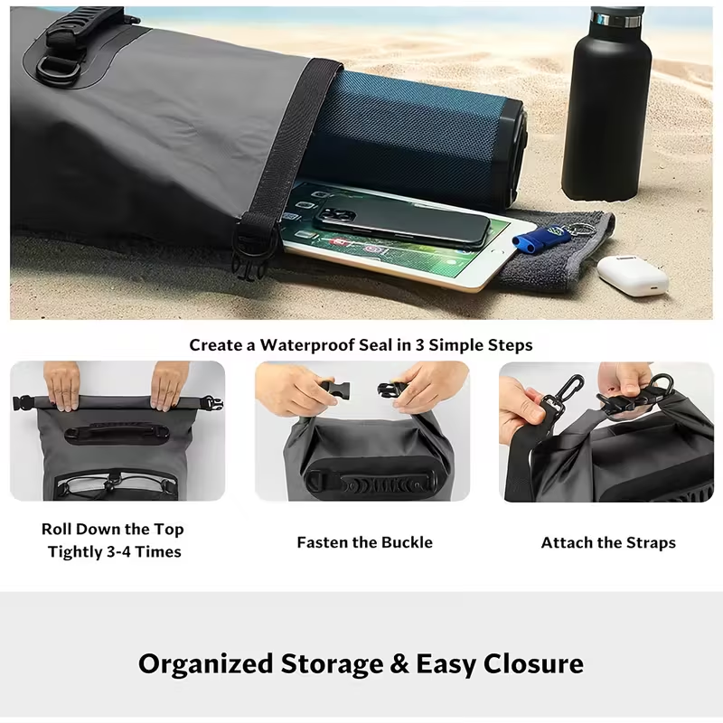 Sac étanche marin 10L à fermeture roll-top pour camping et randonnée, livraison rapide