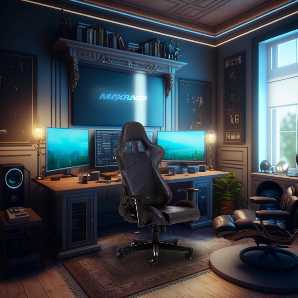 Chaise de jeu gamer pivotante sportive de qualité supérieure Racer 2D Heavy Duty, nouvelle chaise de bureau confortable noire pour PC, livraison rapide