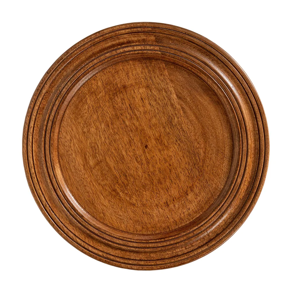 Expédition rapide restaurant utiliser en bois chargeur assiette fête d'anniversaire vaisselle chargeur assiette bonne qualité à vendre