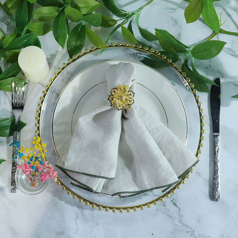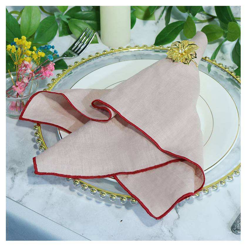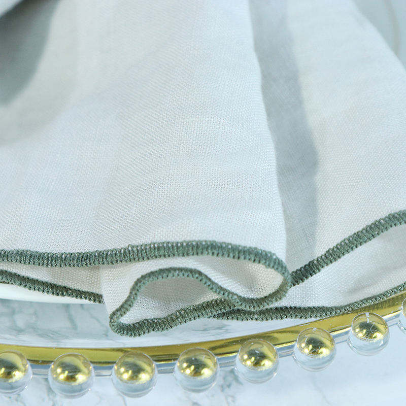 Vente en gros de serviettes en tissu de coton 100% lin de taille personnalisée bordure de serviette brodée à la main pour les mariages OEM ODM disponible rapidement