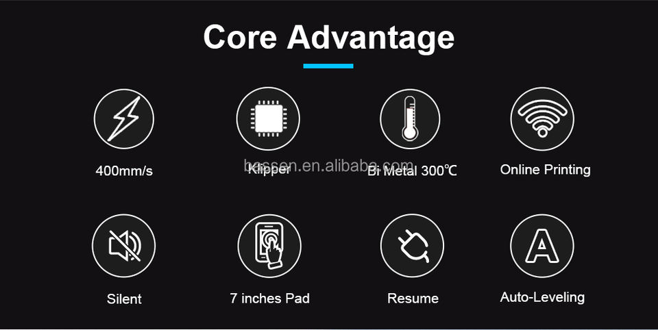 Multi-axes, Lit chauffant, Double extrudeuse, Reprendre L'impression, Filament De Détection, Mise à niveau automatique, Mise à niveau automatique, entraînement direct