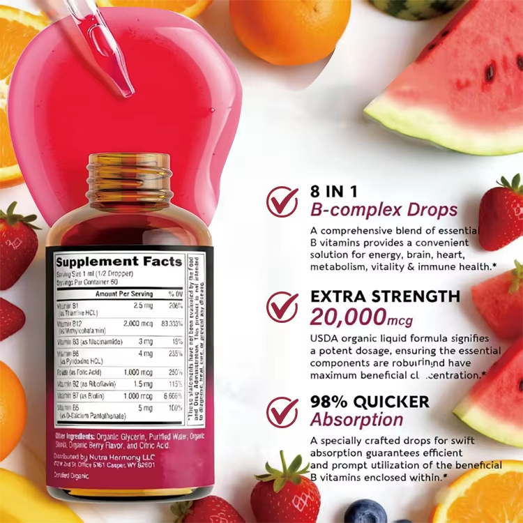 Gouttes de Complexe de Vitamine B à Absorption Rapide, Supplément Multivitaminé et Minéral, Soutien Énergétique et Immunitaire, Gouttes Orales (en Stock) sans Logo de Marque