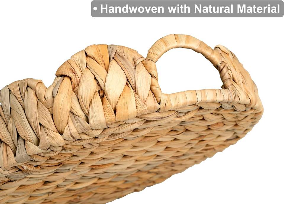 Fast Shipping Round Water Hyacinth Tray: Scalloped Edge Design with Built-in Handles for Serving Woven Baskets