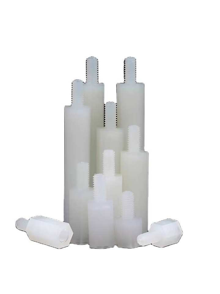 Fasteners Studs Threaded Rods New Plastic Thread PA 66 White PCB Standoff Spacer Female to Male Screw Threaded Nylon Hex Studs