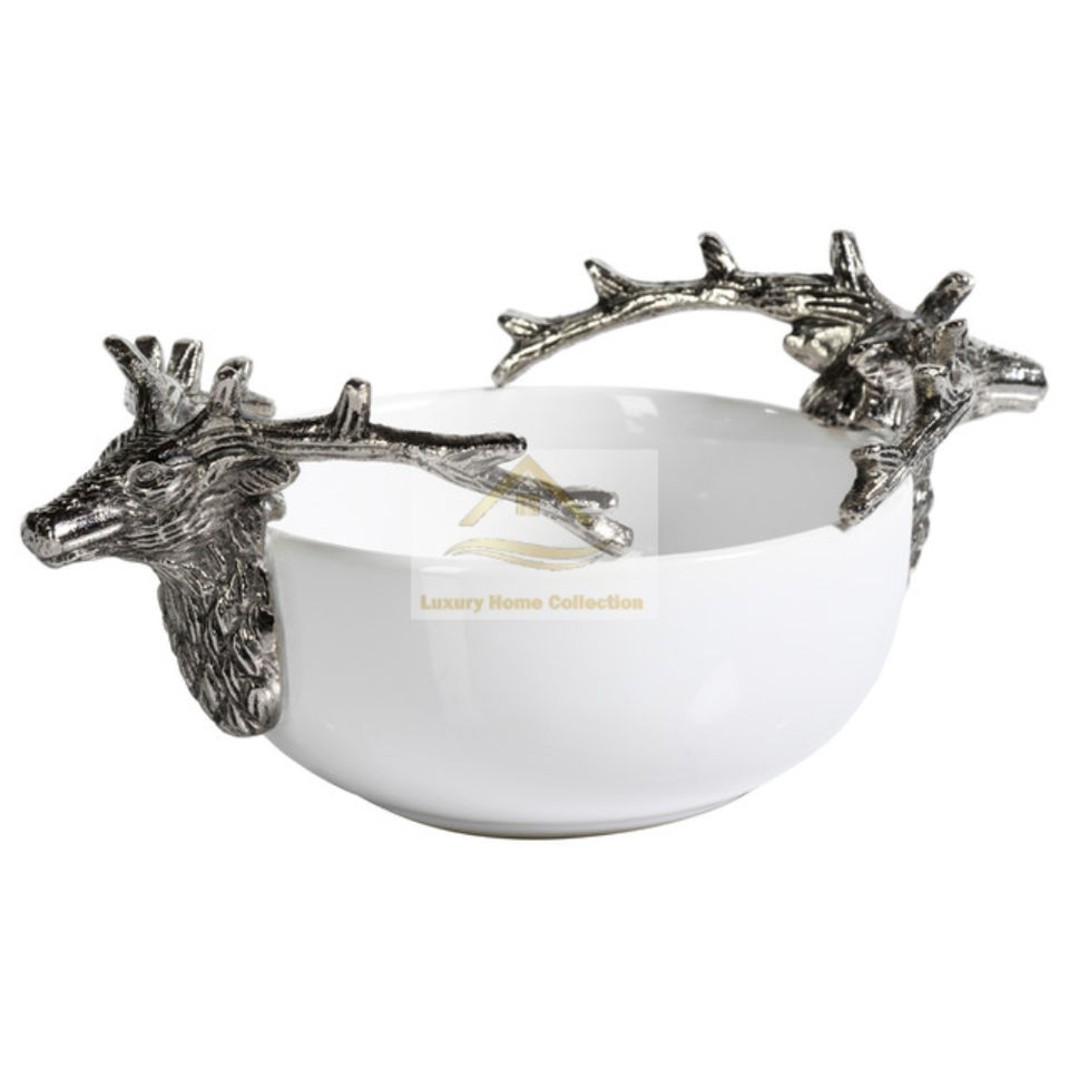 Bol de service de soupe en métal de vente la plus rapide couleur blanche et forme de cerf poignée en fonte d'aluminium couleur argent facile à saisir artisanat en métal