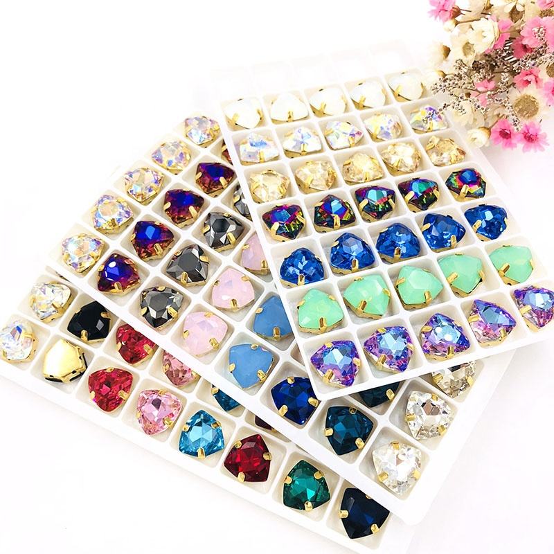 Fat Triangle K9 Glass Sewing Crystal Rhinestones With Gold Claw
