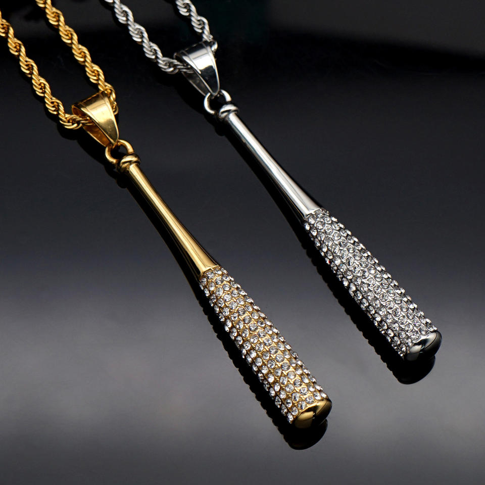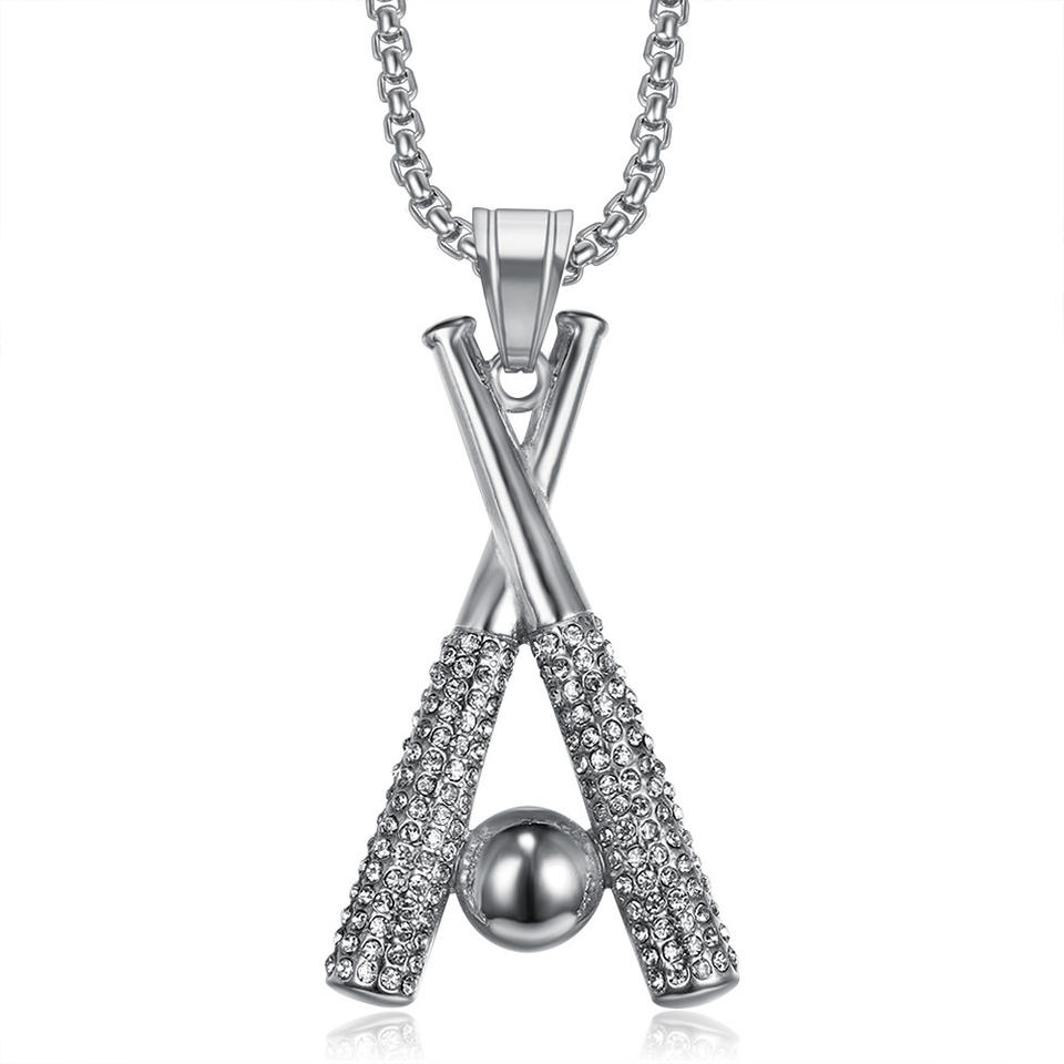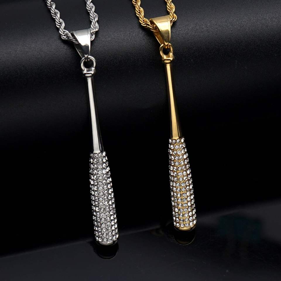 Père garçon hommes porte-clés bracelet Hip-hop bijoux strass acier inoxydable breloques 18k or pendentif bling baseball collier
