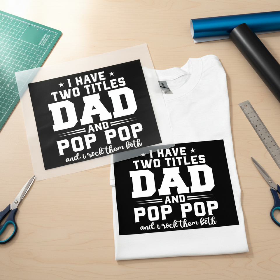 Film PET personnalisé DTF pour la Fête des Pères avec slogan « Papa et Pop Pop » pour T-shirts, transfert facile sur les emballages de bouteilles, autocollant « Selflove »