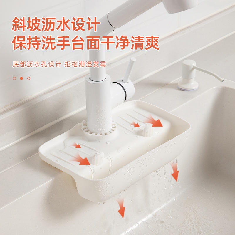 Faucet Splash Guard Sink Drain Mat Trapezoid Wall Mounted Multi Function Kitchen Storage Rack
