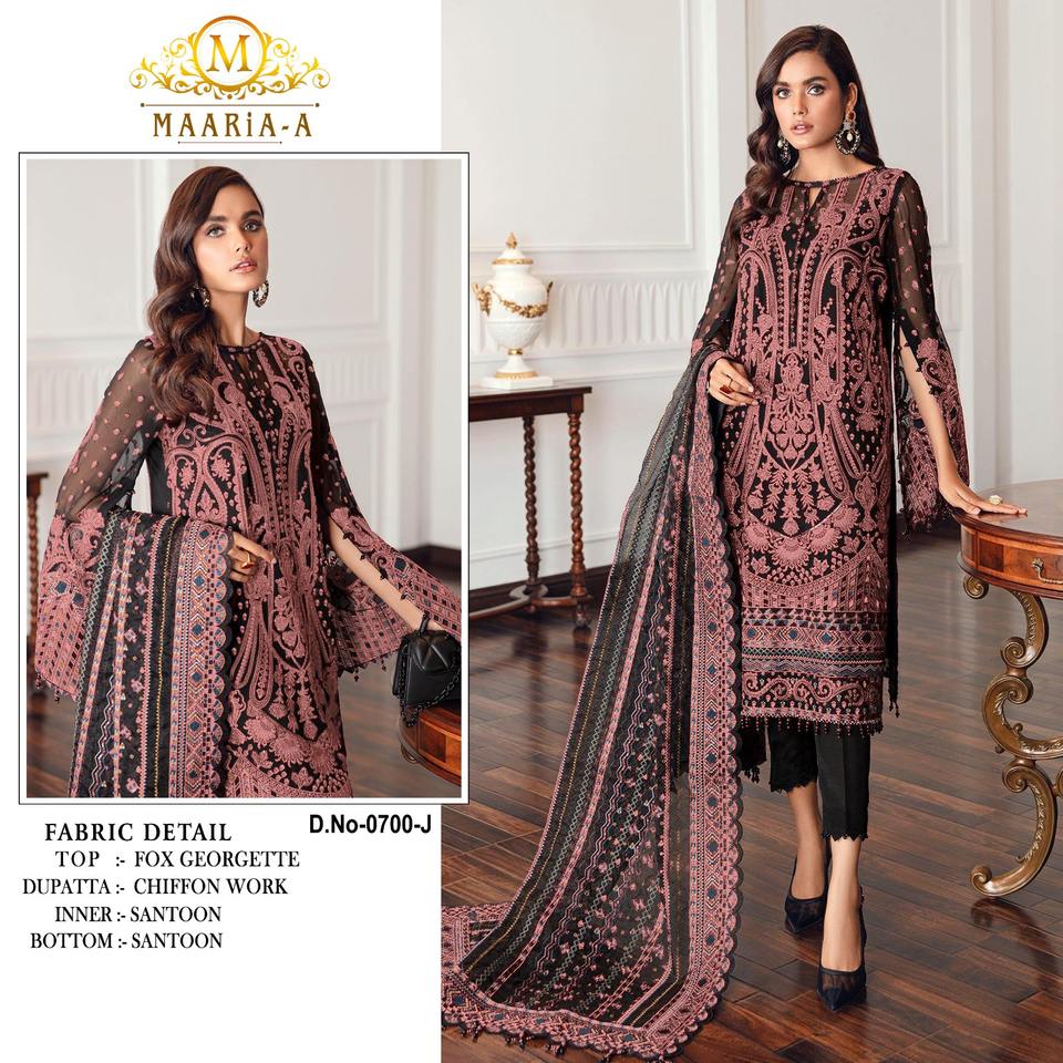Ensemble de fête entièrement cousu en Georgette à broderies de sequins effet fleurie, comprenant un haut, un bas et un dupatta