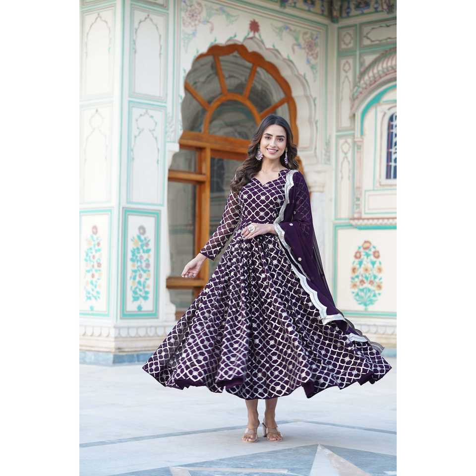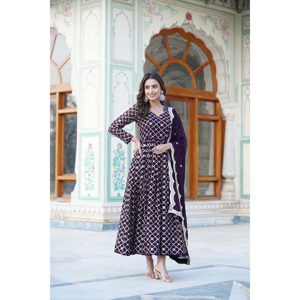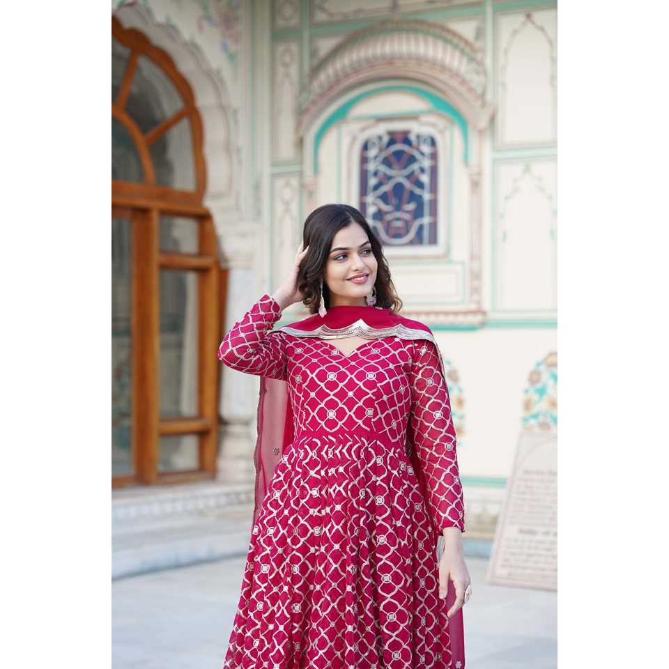 LIVEWEAR Faux Blooming Sequins Embroidered Pink Evening Gown with Dupatta Blooming Work Dress Size M