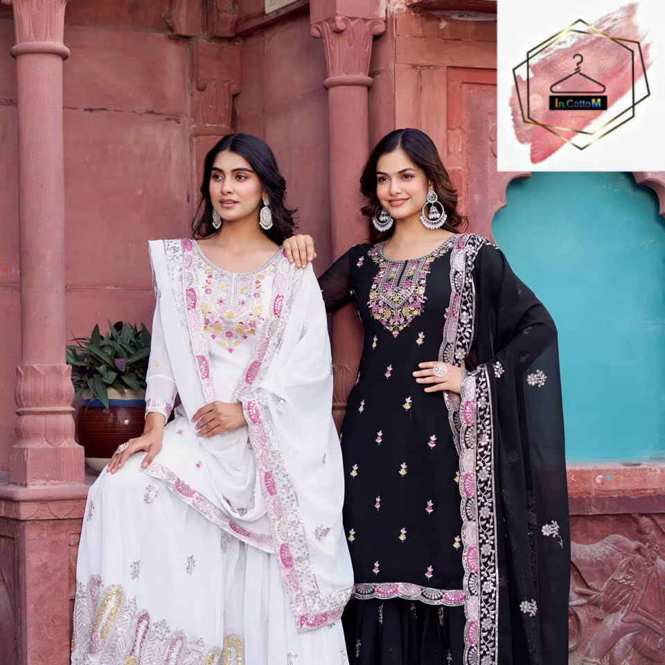 Nom du produit:Ensemble Sharara et Dupatta en Georgette Synthétique