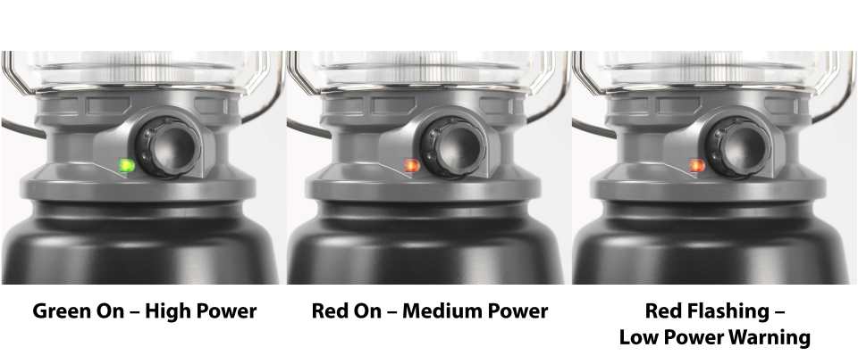 Alimentation par batterie:Affiche la puissance de la batterie après l'allumage de la lanterne