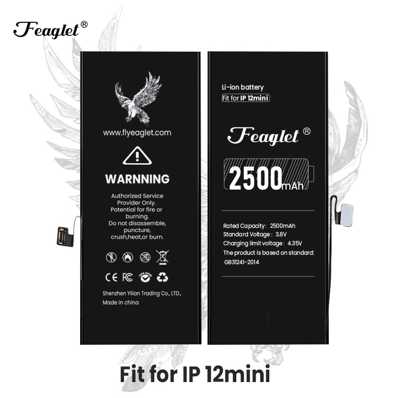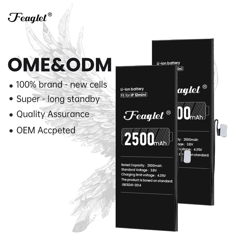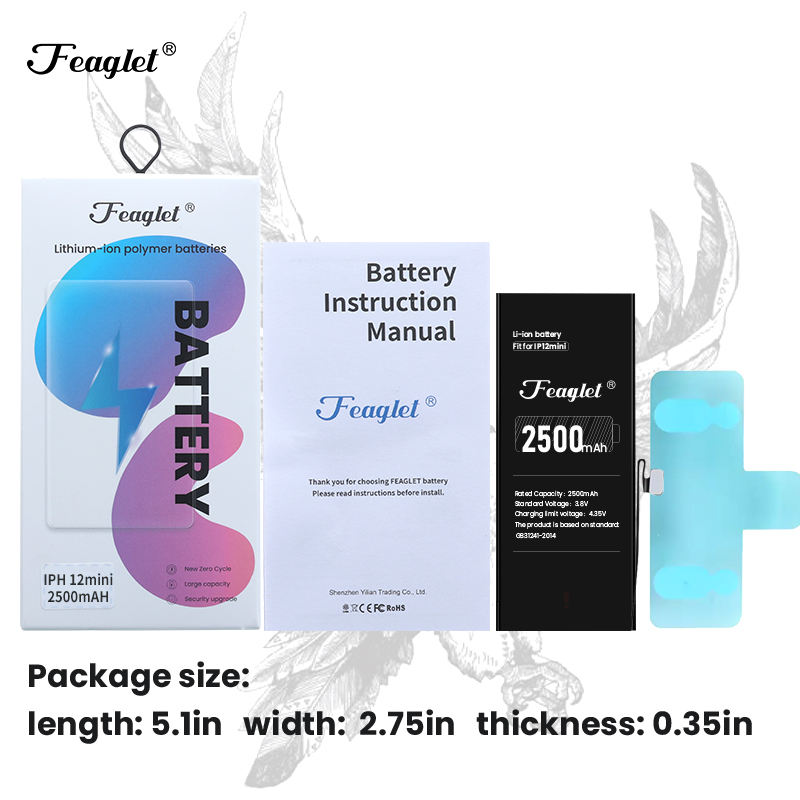 Feaglet Batterie Haute Capacité 12 Mini Téléphone Mobile 2500 mAh Batterie Au Lithium pour iPhone 12 Mini Grade Batterie